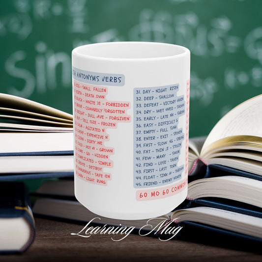 60 Common English Antonyms Learning Mug, (11oz, 15oz)