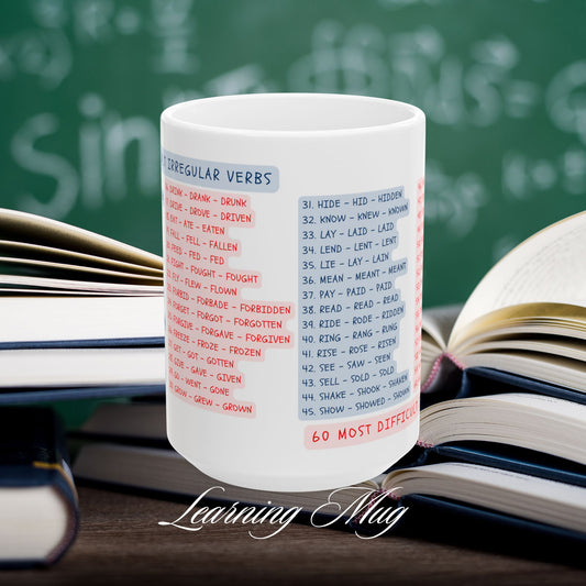 60 Most Difficult Irregular Verbs Learning Mug, (11oz, 15oz)