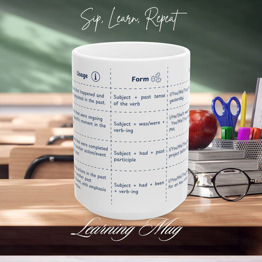 Past Tenses Learning Mug, English Grammar Mug (11oz, 15oz)