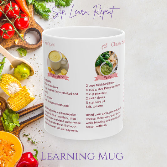 Classic Sauce Recipes Ceramic Mug – Learn to Make Hollandaise, Pesto, Béchamel & Tzatziki