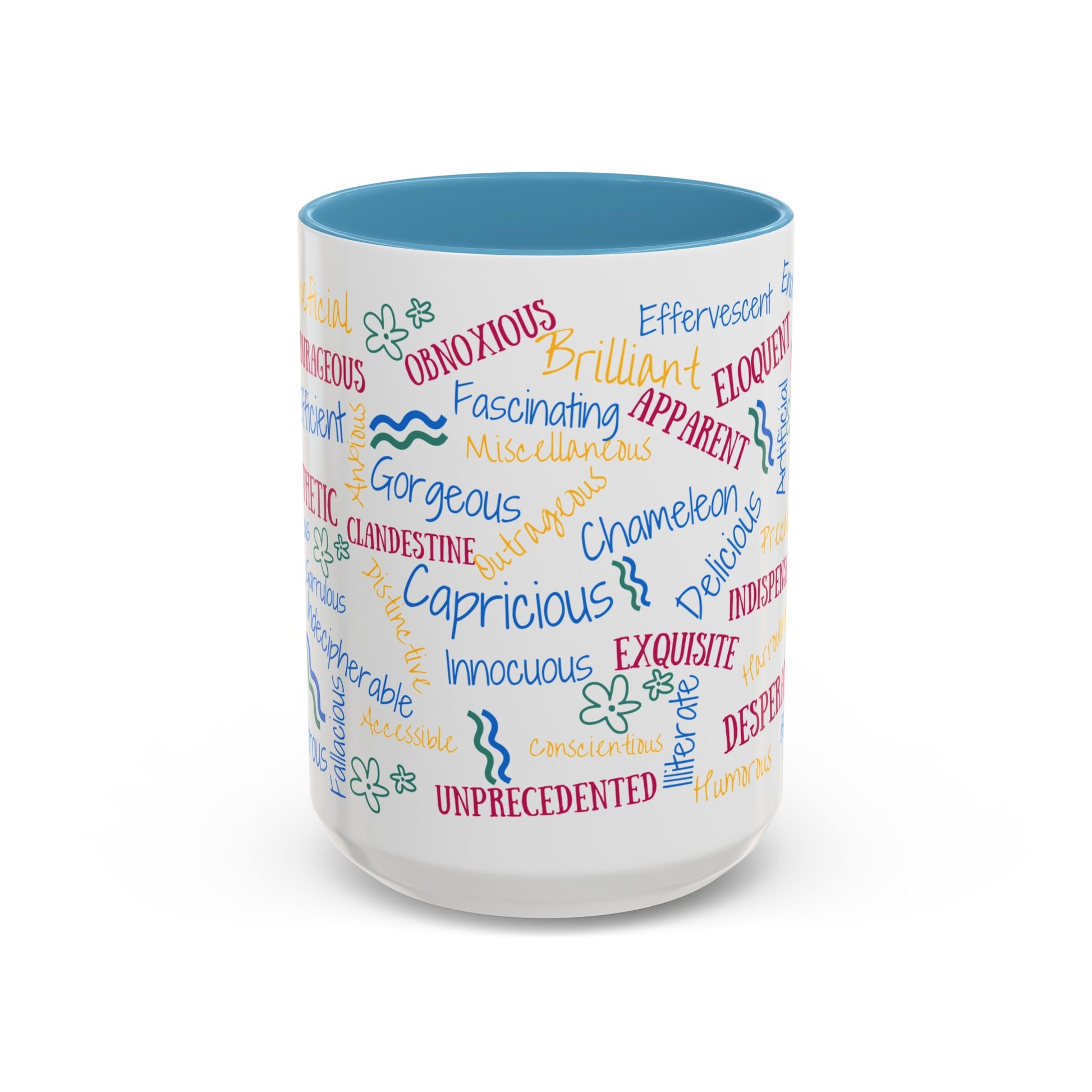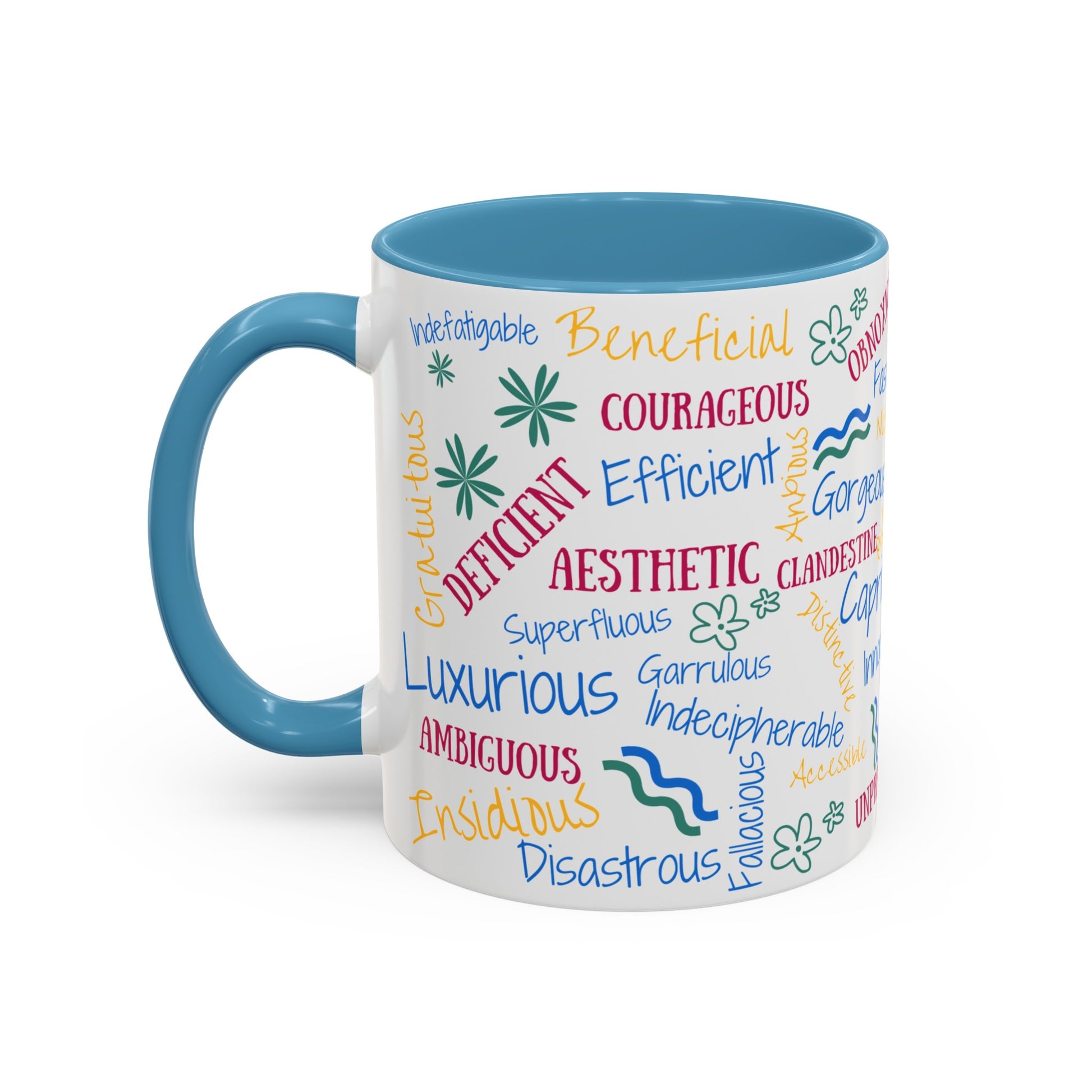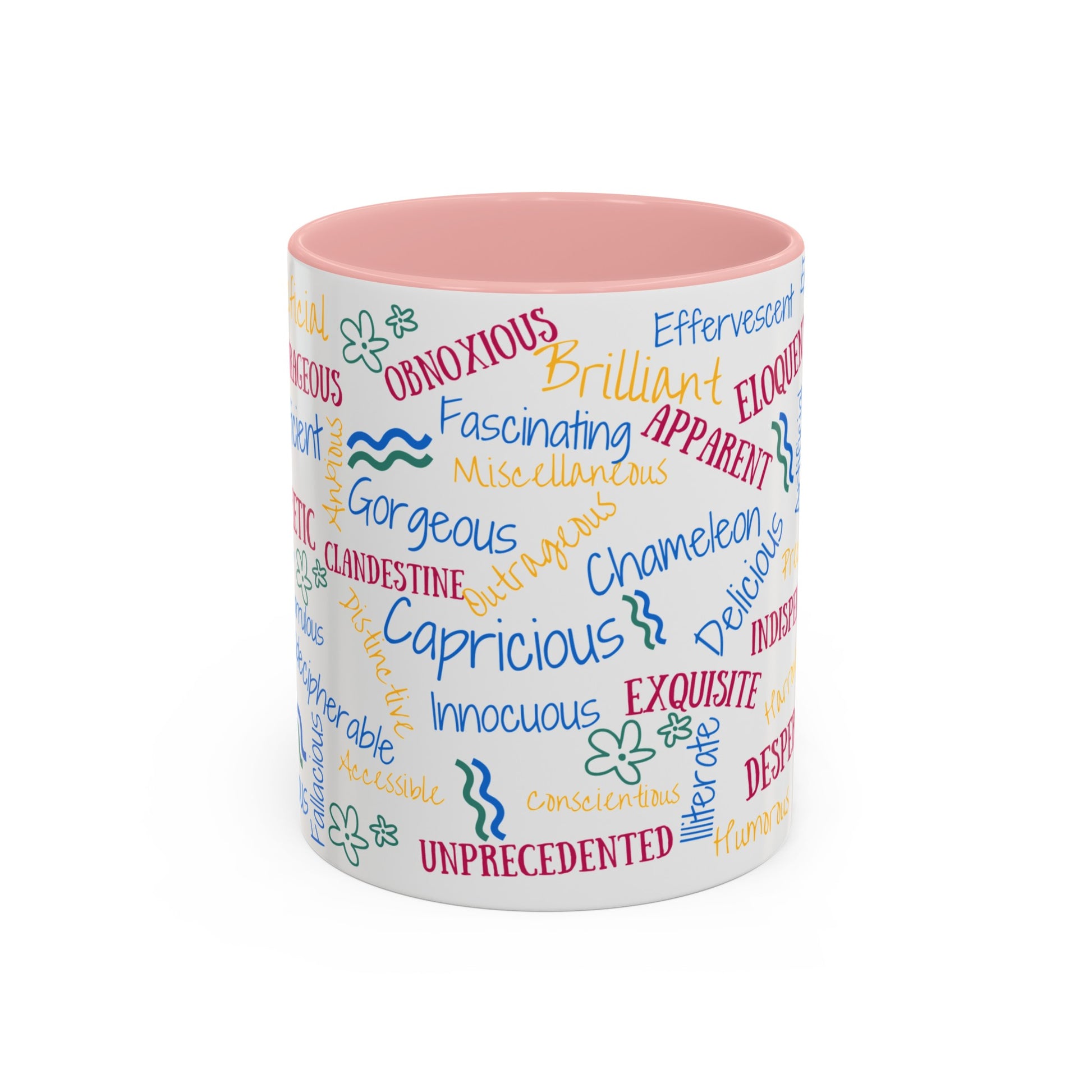 - Educational tool: Packed with 50 challenging adjectives, this mug is a fantastic tool for learning new words and improving your spelling skills.