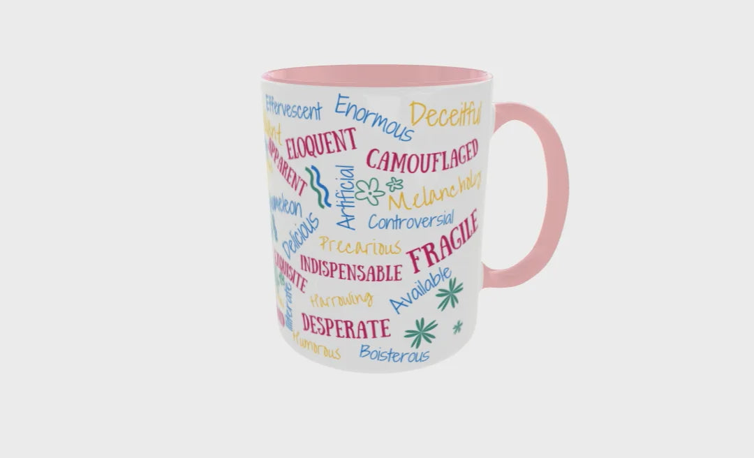 Enhance your vocabulary and spelling skills with our innovative English Adjectives Learning Mug.