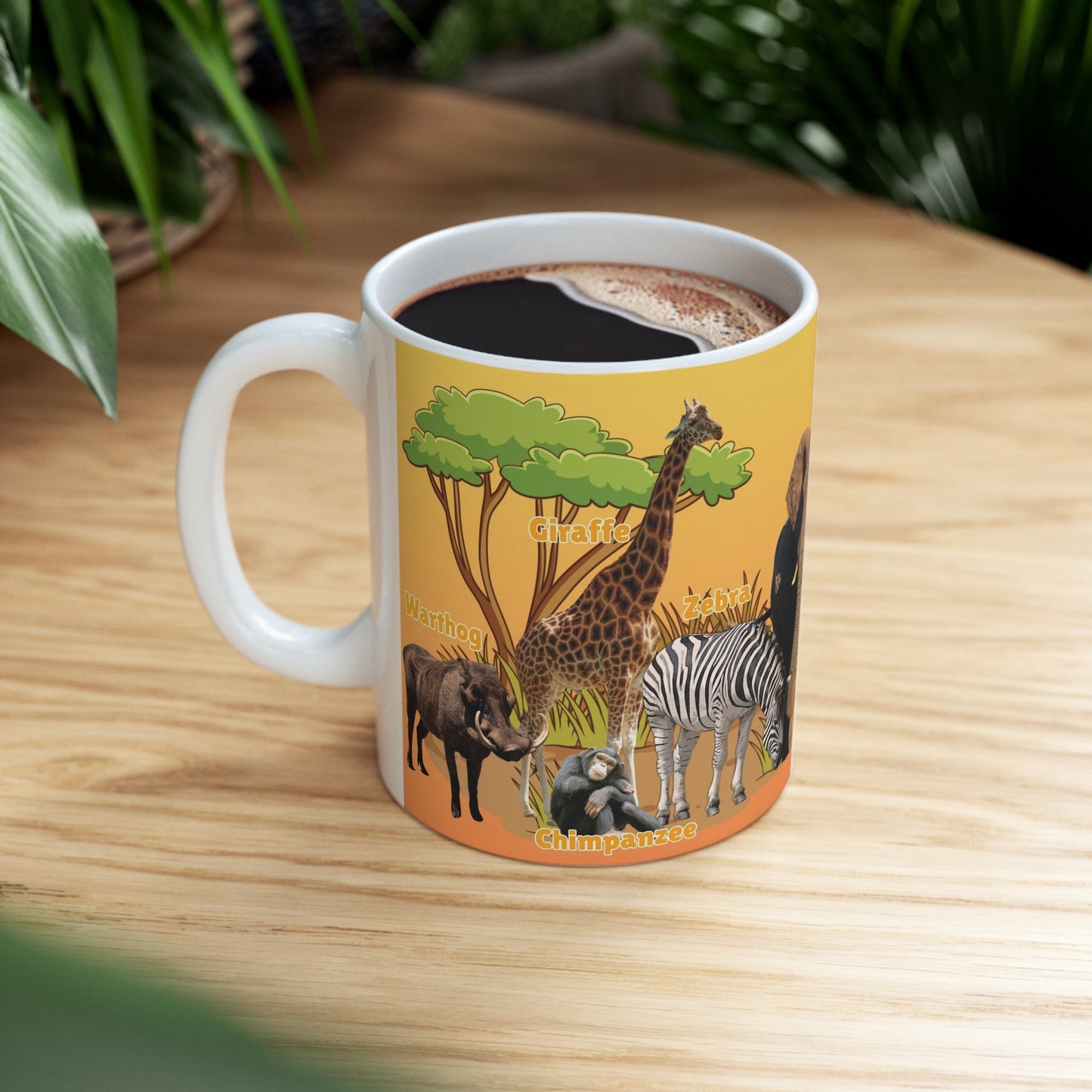 Animals Of Africa Learning Mug for Kids, Preschoolers, Kindergartens Ceramic Mug, 11oz