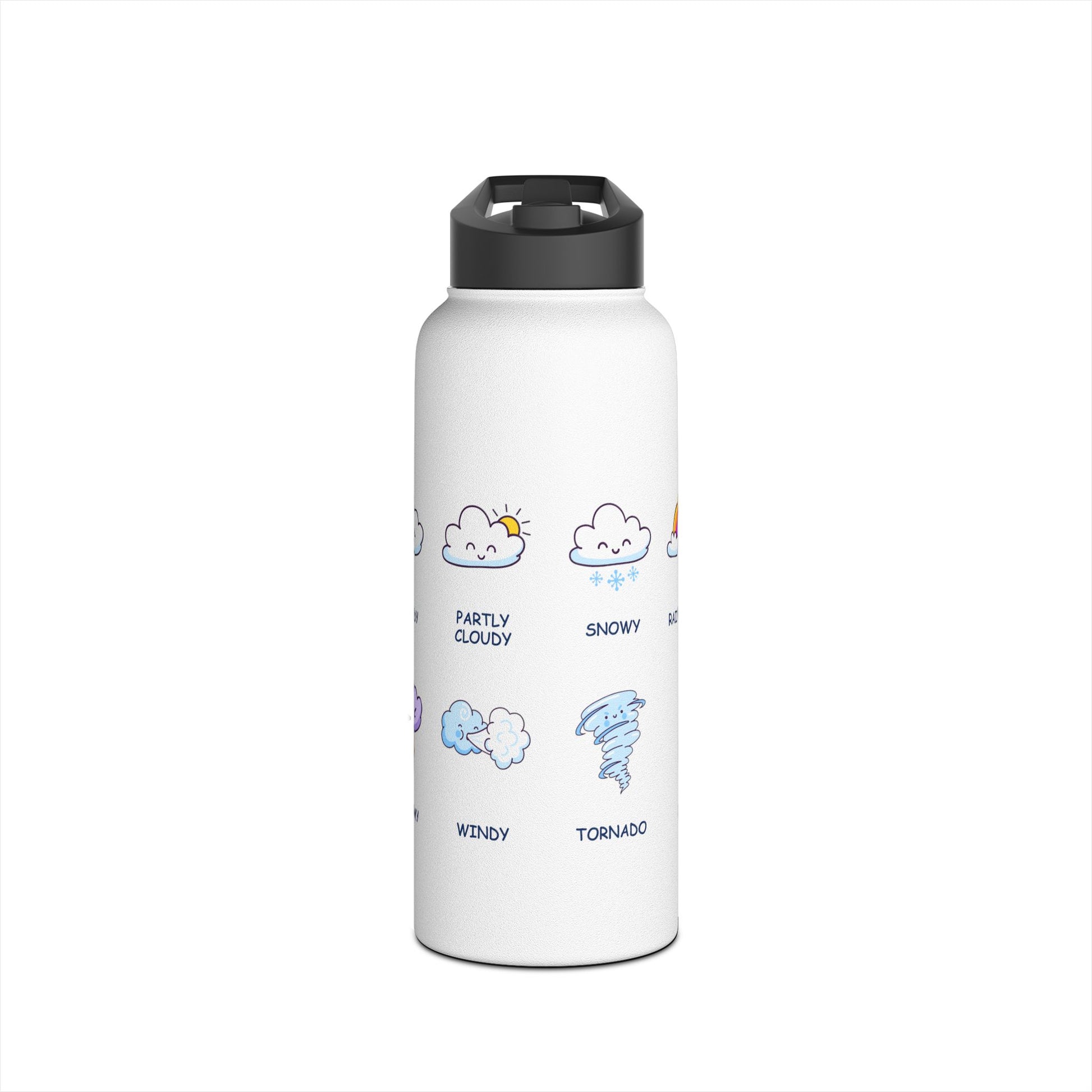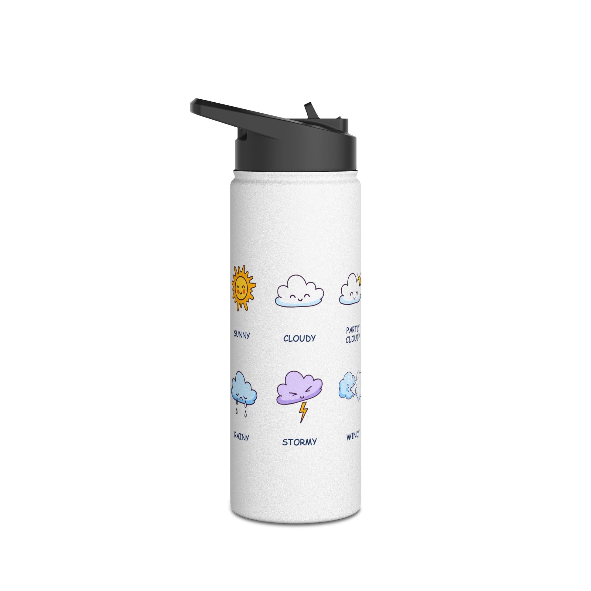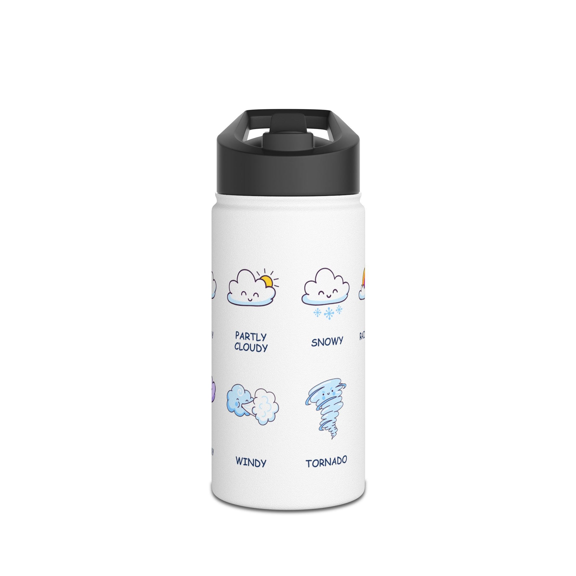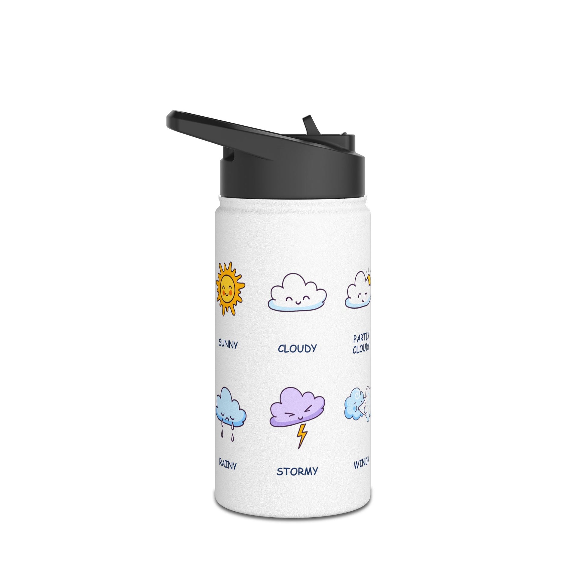 Introducing the Weather Learning Water Bottle for Kids – a fun and educational way for children to stay hydrated! This vibrant, stainless steel water bottle is adorned with colorful illustrations of various weather conditions, including rain, wind, sun, and more.